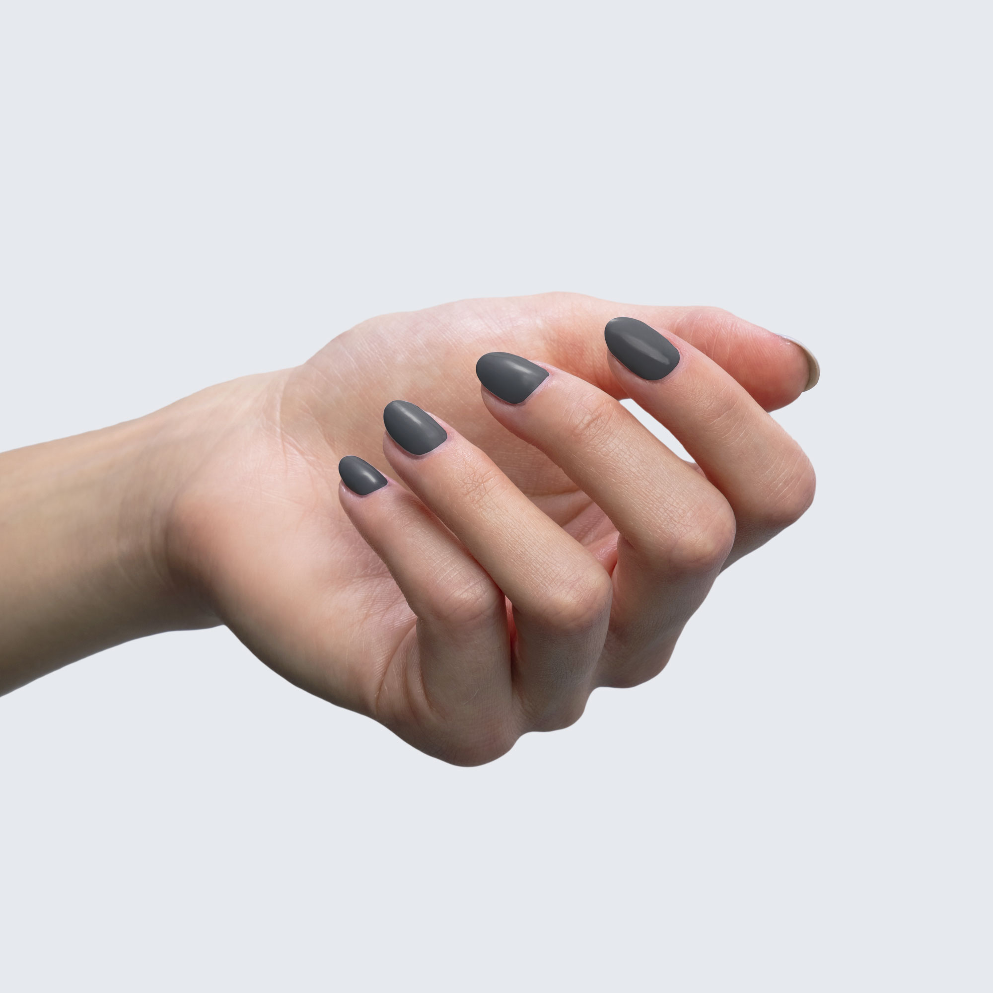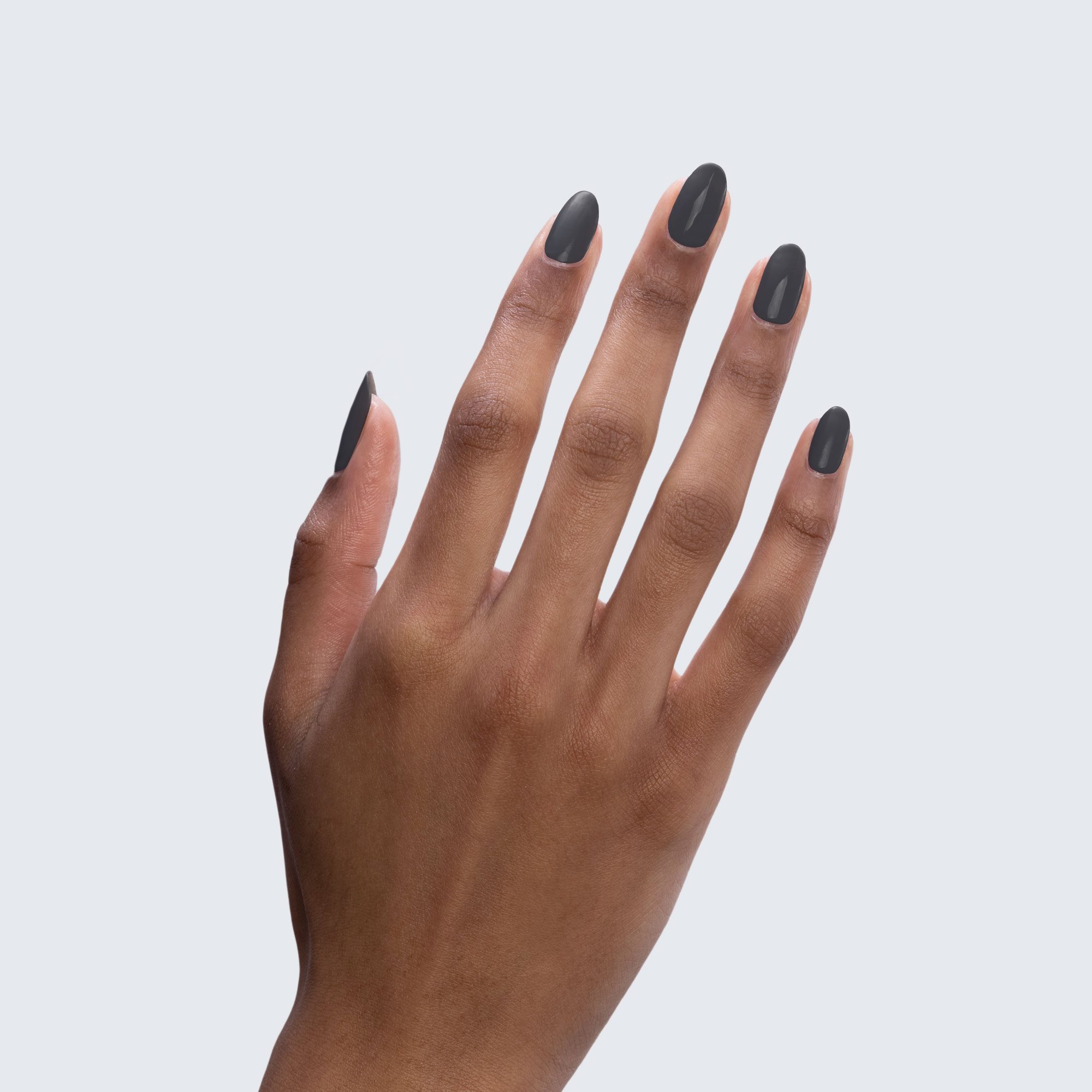 Charcoal grey. Dark. Opaque. Warm undertone.